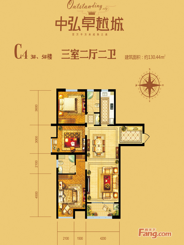 • 中弘卓越城3#樓、5#樓C4戶型3室2廳2衛(wèi)1廚 130.44㎡