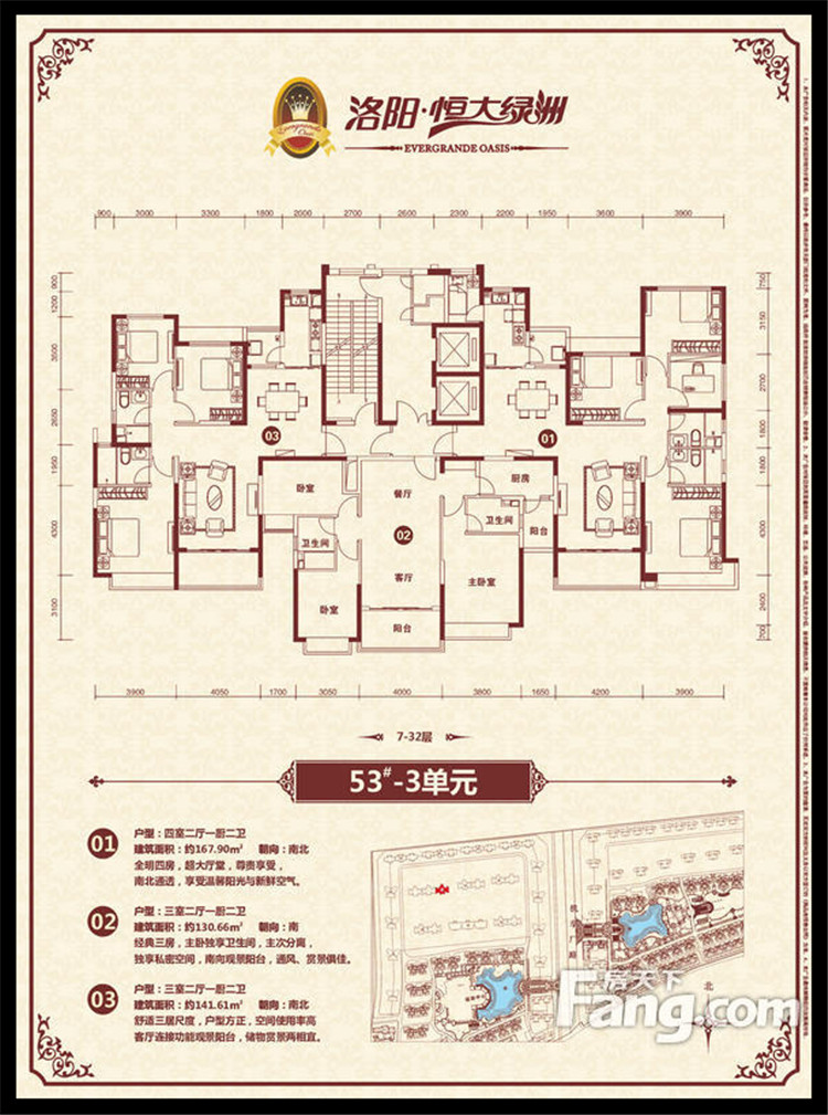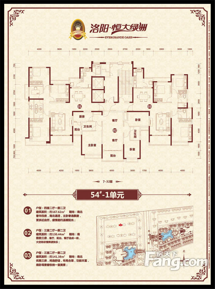 恒大綠洲項目位于洛陽市瀍河區(qū)洛陽市東出口,洛河以北、中州東路兩側(cè)、二廣高速以西,項目獨享洛河北岸3500多米河岸線,且處于洛陽市城市東西中軸線中州路東段,臨中州路街面長2000余米,有多路公交車直達。恒大綠洲全部項目占地面積約1338畝,規(guī)劃建筑面積近301萬平方米,居住單位2.06萬余戶,除居住建筑外,項目內(nèi)還配置了運動中心、綜合樓(會所)、幼兒園、小學(xué)、中學(xué)、商業(yè)配套、五星級酒店等,整個項目建成后,將形成約6.6萬人的居住規(guī)模。全部項目累計總投資超過100億元人民幣,預(yù)計上交稅收超過15億元人民幣。