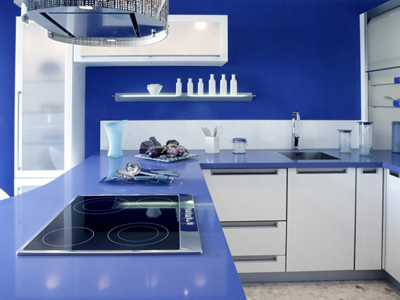 其實(shí)白色的吸塑櫥柜與藍(lán)色的石英石臺(tái)面,結(jié)合得相當(dāng)美。