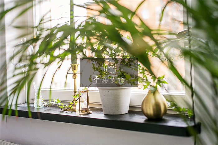臥室的窗臺處照樣運用了大量的綠植加以點綴,為空間增加了一分生機。但其中零星點綴的金屬擺件卻是和綠植相輔相成,不會太過冰冷,亦不會太過柔和,既豐富了混搭空間的主題,又增加了些許居家的品質(zhì),一舉兩得。