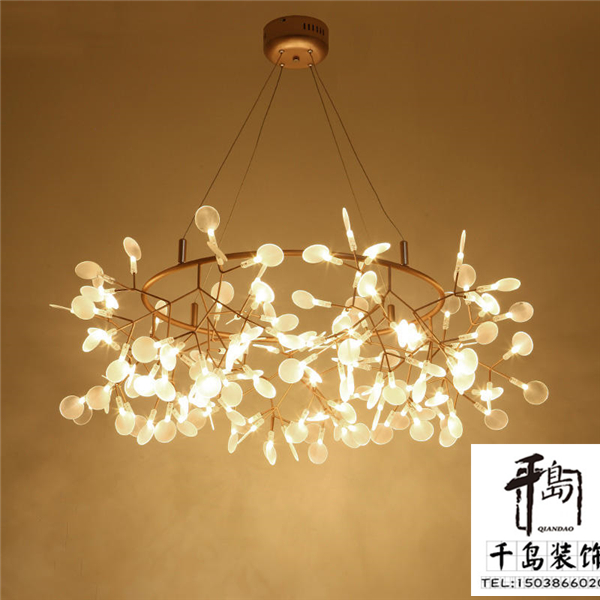 北歐現(xiàn)代風(fēng)格的LED燈具設(shè)置了若干 “白色葉子/鏡片”,像一個(gè)分叉的樹枝,其形態(tài)兼具技術(shù)性和自然美感。在夜晚開燈的時(shí)候猶如一群螢火蟲飛舞,浪漫而且溫馨。