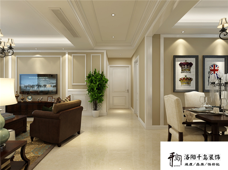 美式裝修,沒有太多造作的修飾與約束,貴氣加大氣而又不失自在與隨意。家具風(fēng)格主要植根于歐洲文化,強(qiáng)調(diào)簡潔、明晰的線條和優(yōu)雅、得體有度的裝飾。在空間分配上,設(shè)計師盡量去關(guān)心每一個家庭成員的內(nèi)心感受,從私密空間到開放式設(shè)計,設(shè)計師都花了很多心思。亞麻質(zhì)感的沙發(fā),既回歸自然,又別有情調(diào)。感謝名門萬象客戶對我們洛陽千島裝飾的信任可支持!