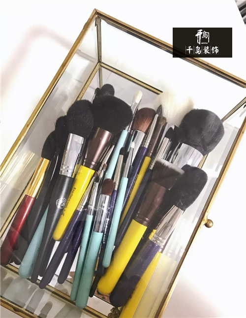日常用的刷子放在桌面,其余放在這個(gè)玻璃盒子里。