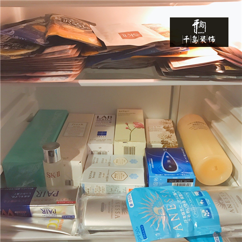 這個(gè)小冰箱專門用來放面膜和沒開封的護(hù)膚品,還有一些能及時(shí)拿的飲料和水,超級(jí)實(shí)用。