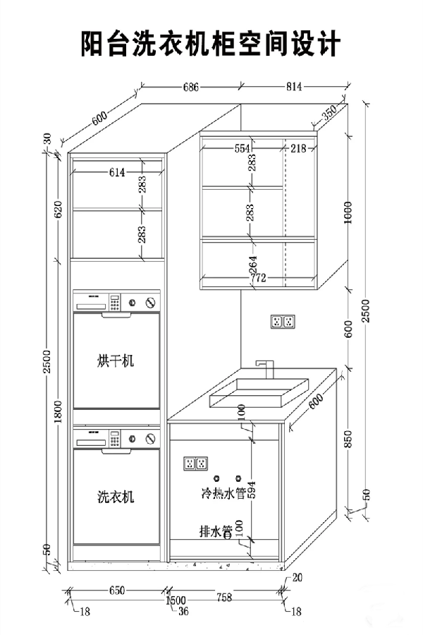 陽臺定制洗烘一體柜尺寸圖