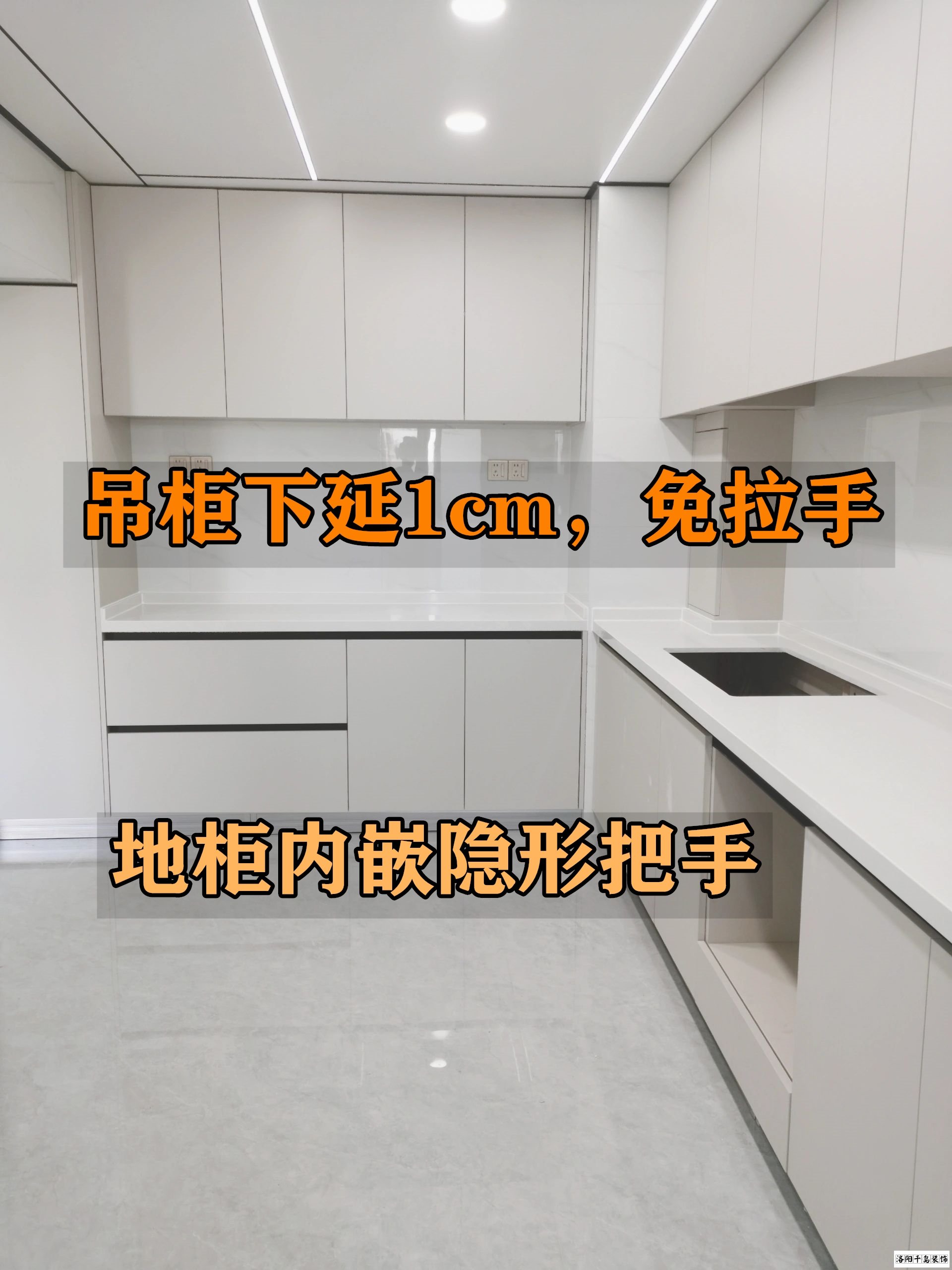 其次,櫥柜把手一個(gè)都不要做,容易磕碰不說,時(shí)間久了到處都是油,擦都擦不住,地柜柜我們就內(nèi)嵌這種隱形把手,吊柜我們就這樣多做一厘米,手輕輕一摳就開了,而且呢,也不多花一分錢,整體看上去啊,更高級(jí)了。