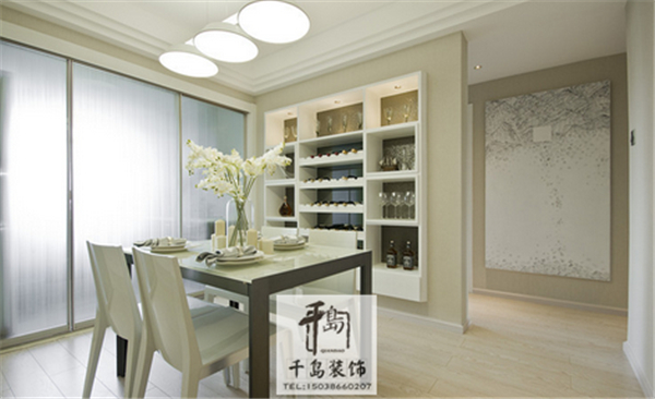 餐客廳分開的,我們可以參照下圖種的,作為墻壁隔斷,再設(shè)計(jì)儲(chǔ)物柜和酒柜,這樣既增加了儲(chǔ)物空間,而且也很美觀。