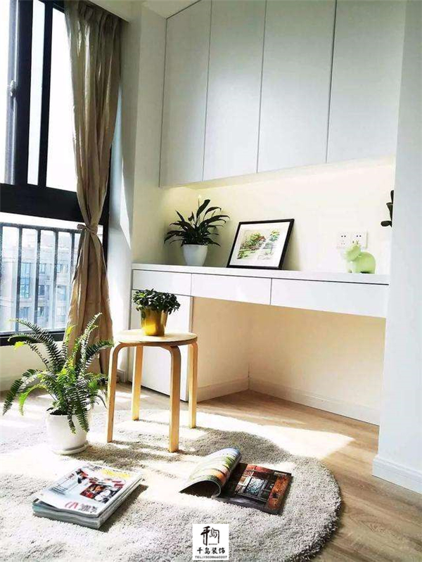 書房做成榻榻米,客人來時,它是客房,平時則充當(dāng)著書房的作用;